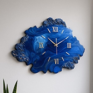 Blue Geode Resin Wall Clock, Ocean Epoxy Art Clock, Silent Quartz Clock, Modern Wall Art, Crystals Home Decor, Housewarming Gift, Handmade