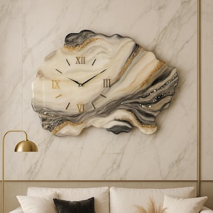 Be the first to review “Epoxy Resin Wall Clock – Large Handmade Wall Clock with Gold and Grey Marble Design, Modern Geode Statement Decor” Cancel reply